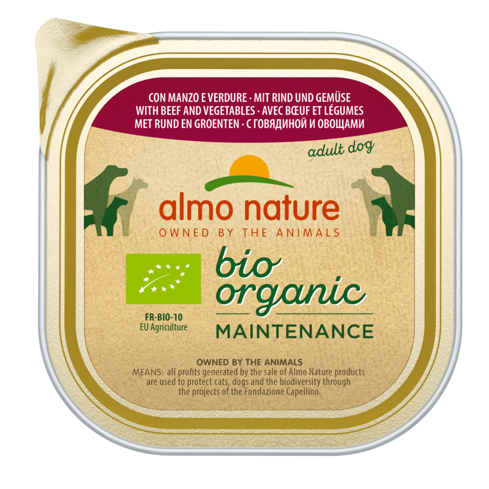 Vyberte Almo Nature BioOrganic Maintenance bio hovězí & bio zelenina 9×300 g a dejte svému psovi krmivo, které zapadá do každodenní péče – objednejte nyní.