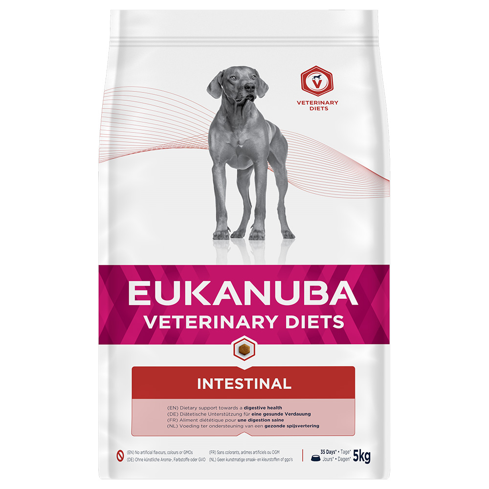 Eukanuba VETERINARY DIETS Adult Intestinal 5 kg je ideální pro majitele dospělých psů, kteří řeší intestinální potíže a hledají veterinární krmivo zaměřené na trávení. Hodí se také tehdy, když chcete u psa držet konzistentní dietní režim a vybrat variantu přímo z řady VETERINARY DIETS.