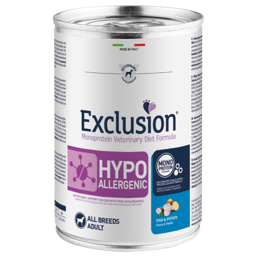 Pořiďte Exclusion Diet 6 × 400 g – ryba a brambory a dopřejte svému psovi dietní krmivo, které se snadno začleňuje do eliminačního režimu – stačí vybrat a objednat.