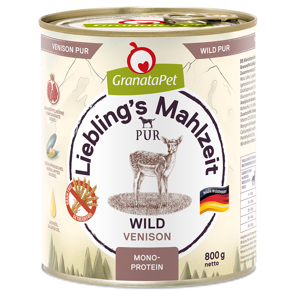GranataPet Liebling's Mahlzeit PUR 24×800 g: výhodné balení s věrnou chutí zvěřiny