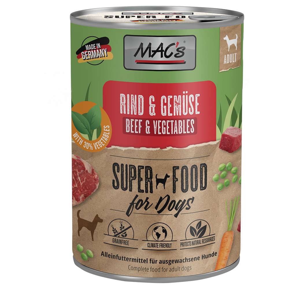 MAC’s konzervy pro psy 24 × 400 g s hovězím a zeleninou – výhodné balení