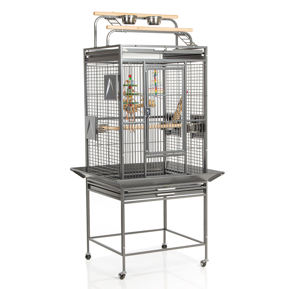 • Prostorné rozměry 77 x 71 x výška 165 cm – více prostoru pro létání, poskakování a aktivní denní rutinu ptáků.