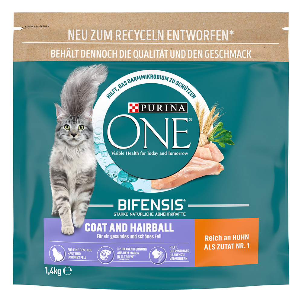 Purina ONE Coat & Hairball 3 × 1,4 kg – kvalitní krmivo pro omezení tvorby hairball