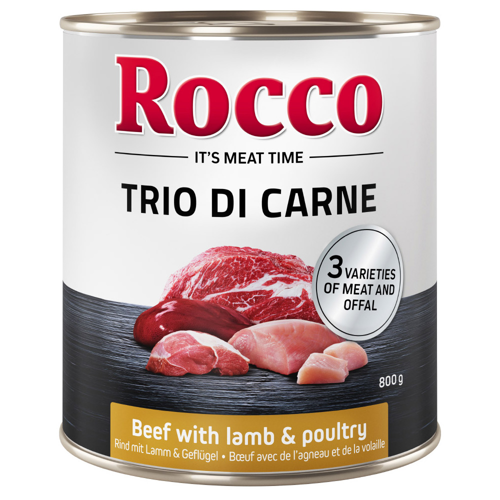 Vyberte si Rocco Classic Trio di Carne a zajistěte psovi chutné krmení s masovými variantami – objednejte 24 x 800 g ještě dnes.