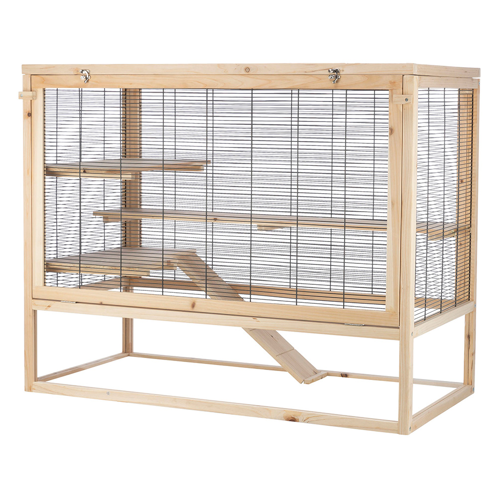 - Vícepatrová konstrukce – nabízí více úrovní pro přirozené chování, jako je průzkum a pohyb po kleci.