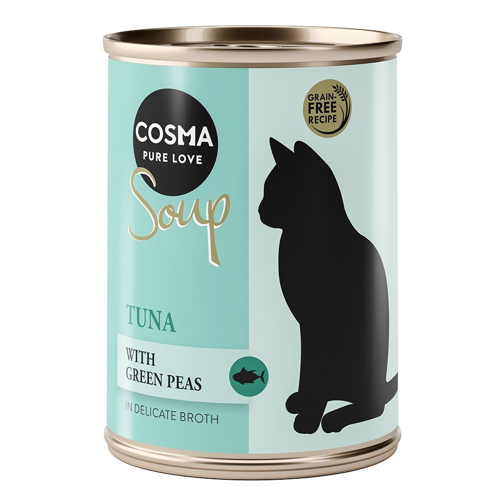 Objednejte Vhodné balení Cosma Soup 24 x 100 g v příchuti tuňák s hráškem a dopřejte kočce chutnou soup porci, kterou si můžete rovnou připravit na další dny.